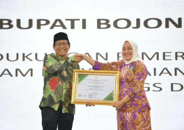 BOJONEGORO, dutaperistiwa.com – Bupati Bojonegoro Anna Mu’awanah meraih penghargaan dari Kementerian Desa PDTT atas dukungan Bojonegoro menyelesaikan 100 persen SDGs Desa.