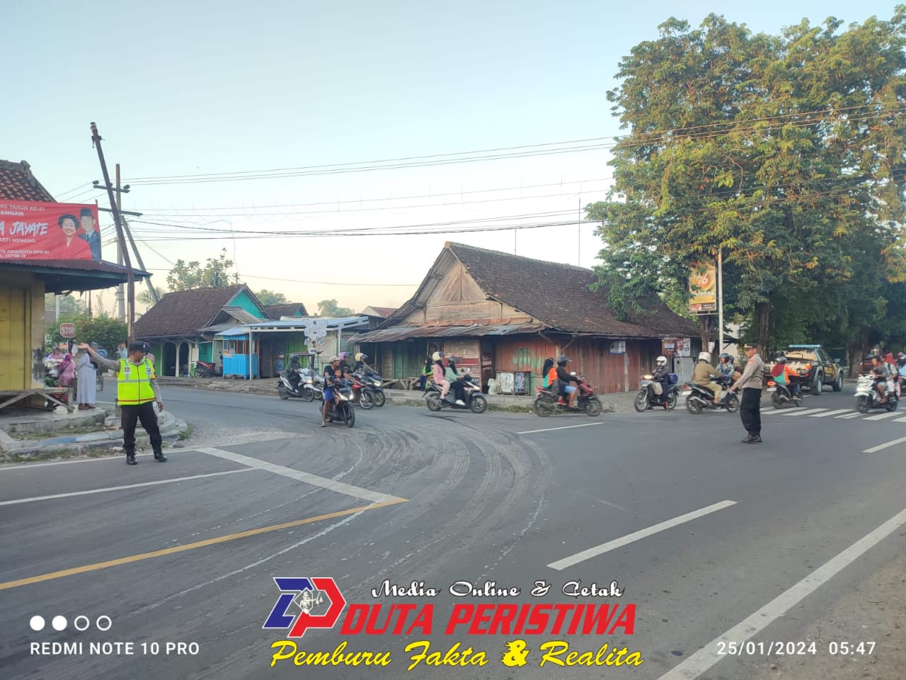 BOJONEGORO, dutaperistiwa.com -Kapolsek Purwosari Iptu Subeki memimpin langsung kegiatan pos awal untuk antisipasi kerawanan kemacetan pada jam kerja dan Antisipasi Kerawanan Kejahatan wilayah hukum Polsek Purwosari Polres Bojonegoro, Kamis (25/01/2024).