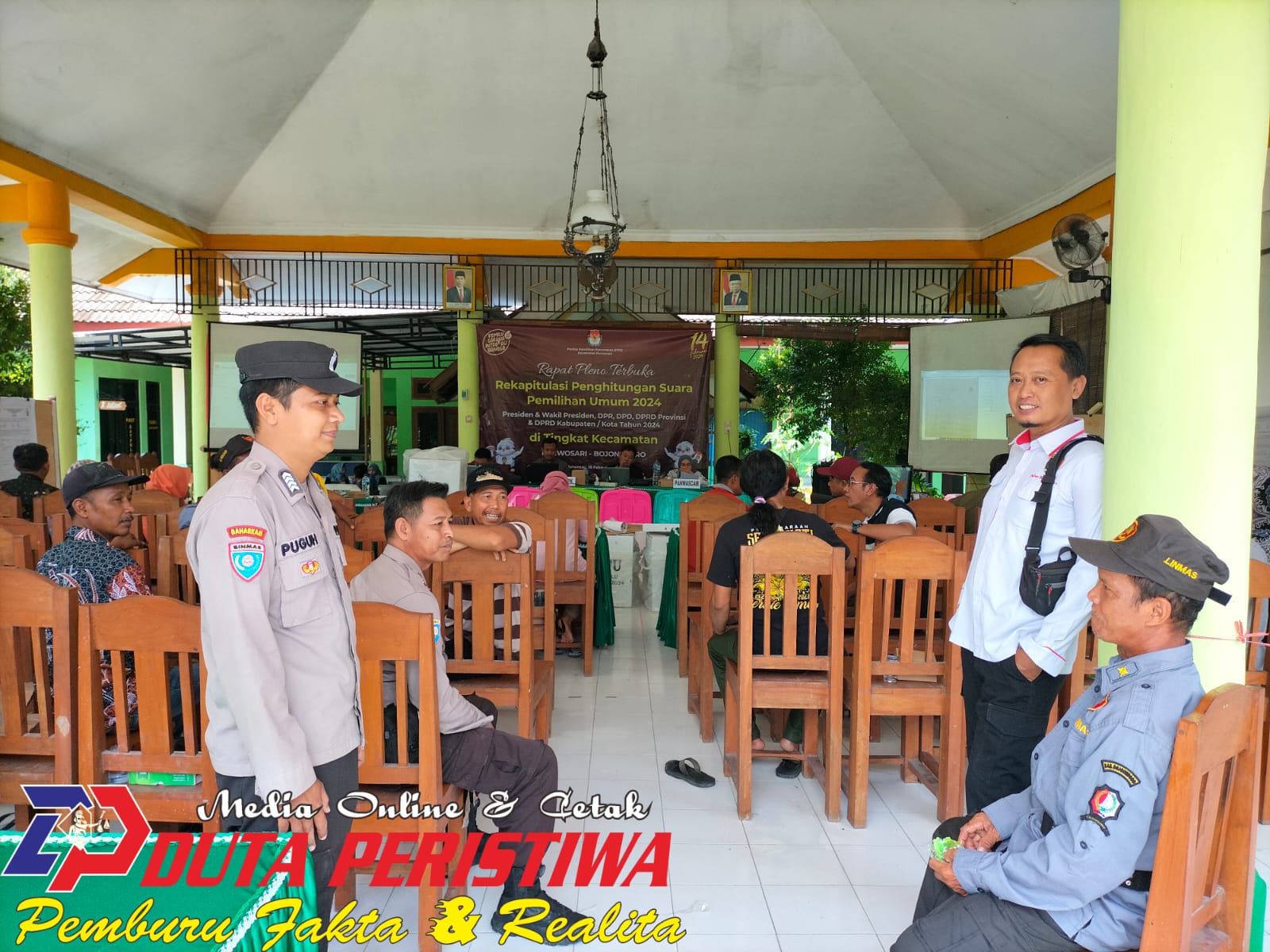 BOJONEGORO, dutaperistiwa.com – Kapolsek Purwosari didampingi dengan para kanit, memantau perkembangan situasi usai proses pemungutan dan penghitungan suara di Kantor PPK Kecamatan Purwosari, Senin (19/02/2024).