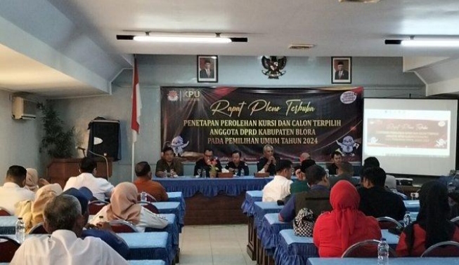 Ketua KPU Blora, Widi Nurintan Ari Kurnianto menjelaskan penetapan tersebut dilakukan dalam Rapat Pleno yang dihadiri oleh jajaran Bawaslu Blora, perwakilan partai-partai politik, serta para stakeholders Blora. Rapat digelar di Hotel Almadina Blora, Kamis (2/5/2024).
