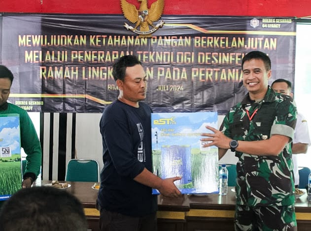 Sementara itu, Didik Heri Susanto, Ketua Gapoktan Tani Lestari Desa Pagerwesi, mengucapkan terima kasih dan bersyukur atas bantuan alat semprot hand sprayer elektrik dari peserta KKL Studi Wilhan Pasis Dikreg Angkatan LXIV Seskoad tahun 2024. “Alhamdulillah dan terima kasih, bantuan ini sangat bermanfaat dalam proses pengendalian hama bagi kami para petani untuk peningkatan produktivitas pertanian,” pungkasnya. (Karyanto/Pendim 0813 Bojonegoro)