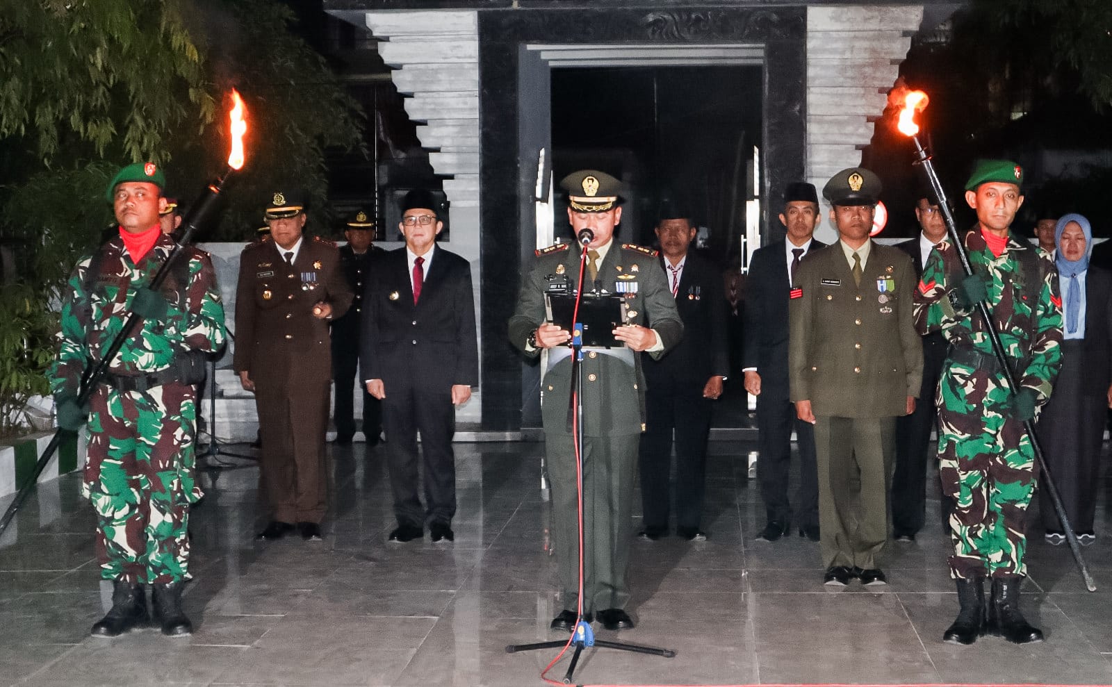Selaku pimpinan apel, Dandim 0813 Bojonegoro Letkol Czi Arief Rochman Hakim, SE., MM., membacakan naskah Apel Kehormatan dan Renungan Suci (AKRS). Saat kegiatan itu berlangsung, lampu di seputaran Taman Makam Pahlawan (TMP) dipadamkan.