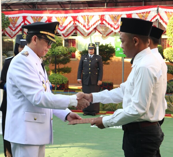 Prosesi penyerahan SK Remisi dilakukan dengan menggelar upacara di halaman Lapas. Selain Pj Bupati, hadir pula jajaran Forkopimda, Kalapas Bojonegoro Sugeng Indrawan, perwakilan OPD serta warga binaan Lapas Bojonegoro.