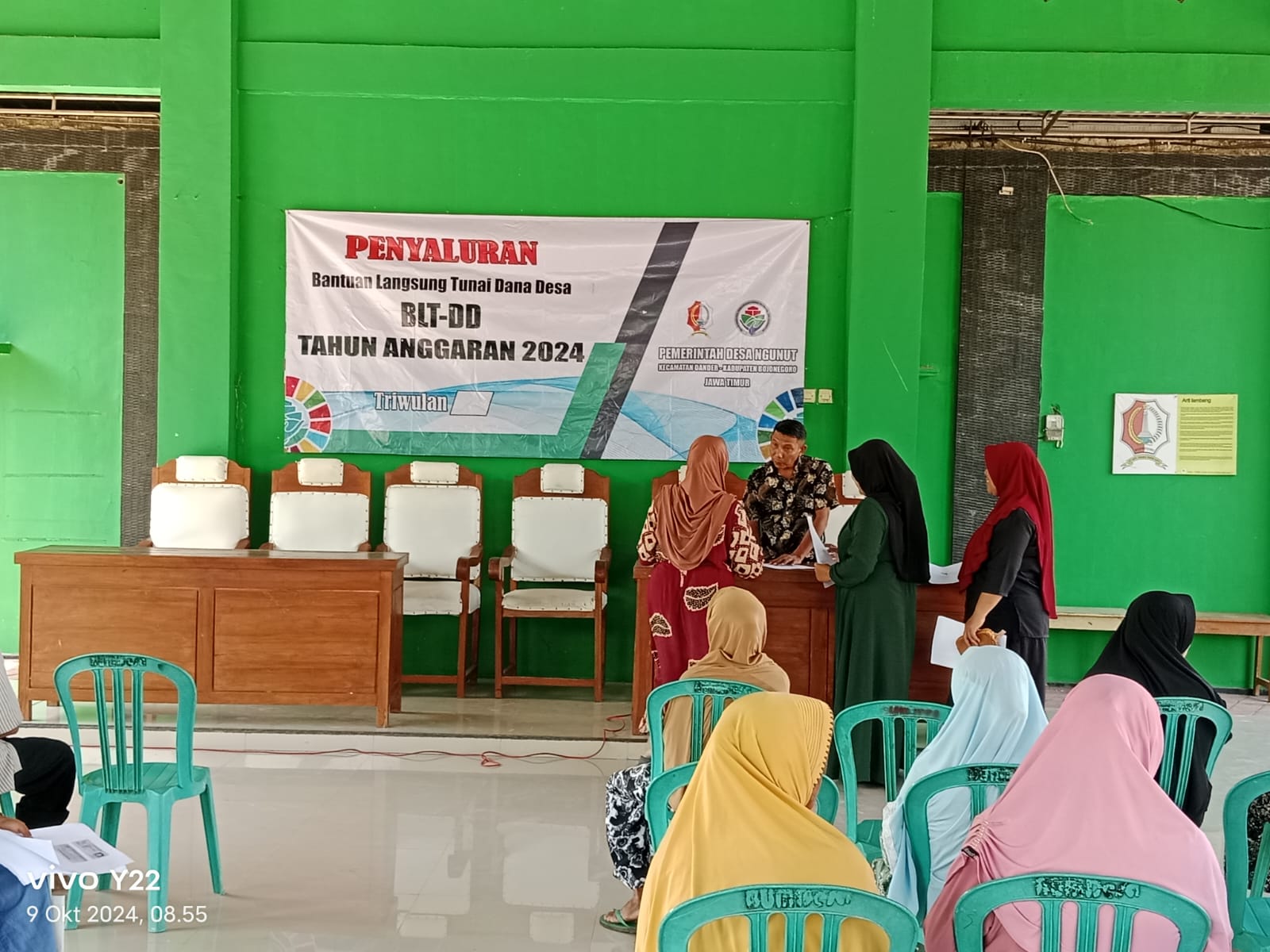 BOJONEGORO, dutaperistiwa.com – Sejak pagi hari, Rabu (09/10/2024) sekira pukul 08.00 wib kantor balai Desa Ngunut Kecamatan Dander tampak dipenuhi oleh puluhan warganya. Adapun kedatangan mereka adalah untuk menerima Bantuan Langsung Tunai – Dana Desa (BLT-DD) triwulan ketiga yang akan dibagikan hari ini.