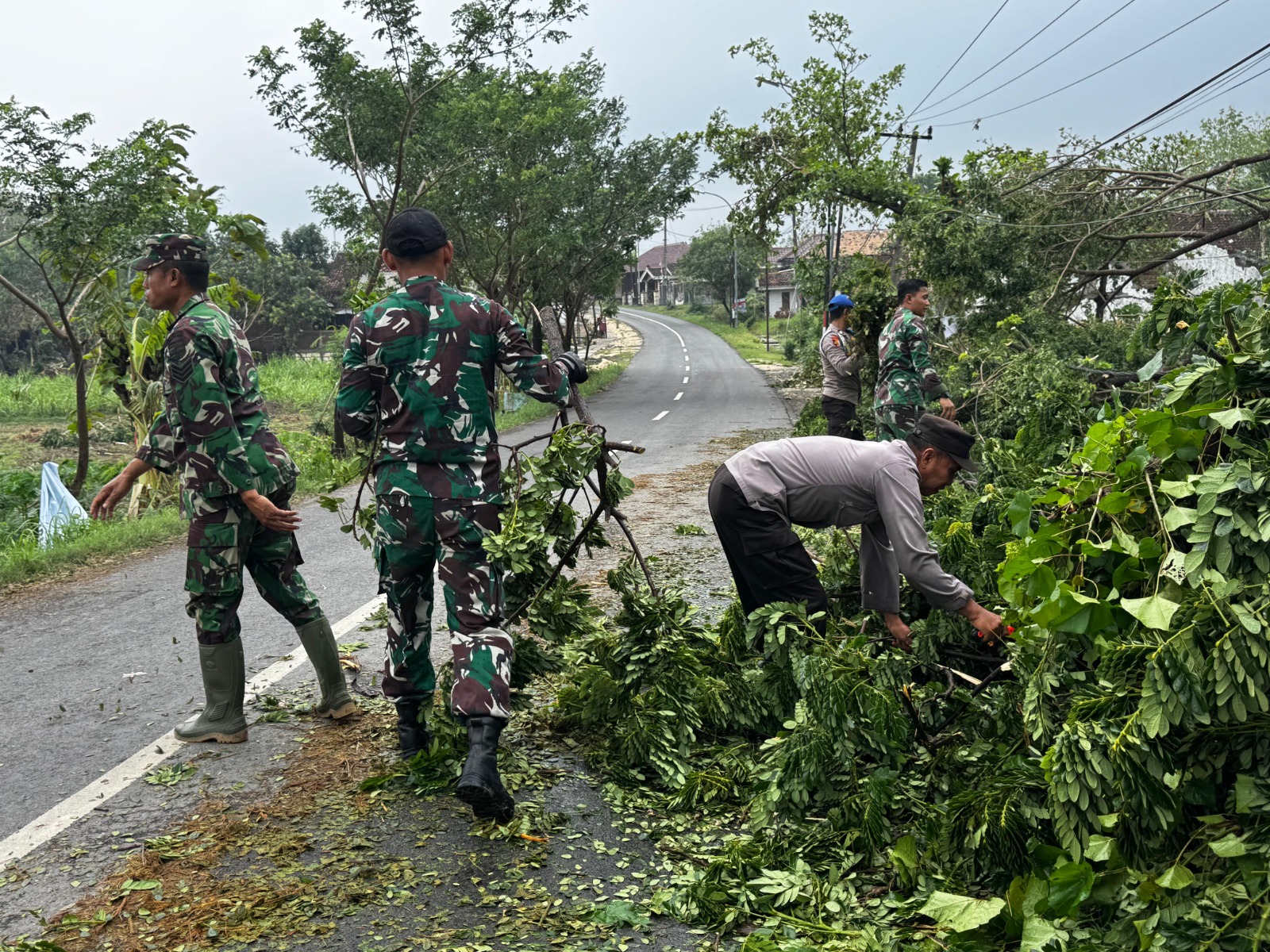 “Angin kencang yang menyertai hujan mengakibatkan pohon tumbang melintang di jalan. Personel Polsek Ngasem bersama instansi terkait dibantu warga setempat langsung mengamankan lokasi dan mengevakuasi pohon tersebut untuk mencegah kemacetan yang lebih parah,” ungkap Kasi Humas.