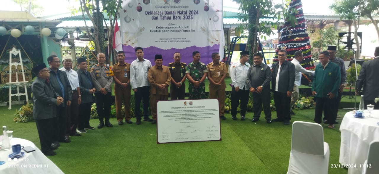 Sementara itu, ketua Forum Kerukunan Umat Beragama (FKUB) Bojonegoro, H. Tamam Syaifuddin mengungkapkan bahwa deklarasi ini menguatkan langkah menjaga kerukunan antarumat beragama melalui Deklarasi Damai Natal 2024 dan Tahun Baru 2025.