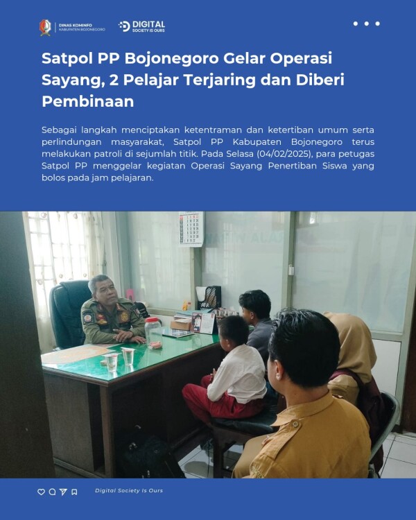 Kepala Satpol PP Bojonegoro melalui Kepala Bidang Ketentraman dan Ketertiban Umum, Budiyono menuturkan para personel Satpol PP melakukan patroli di beberapa warung kopi wilayah Bojonegoro. Hasilnya, dua pelajar terjaring Operasi Sayang tersebut.
