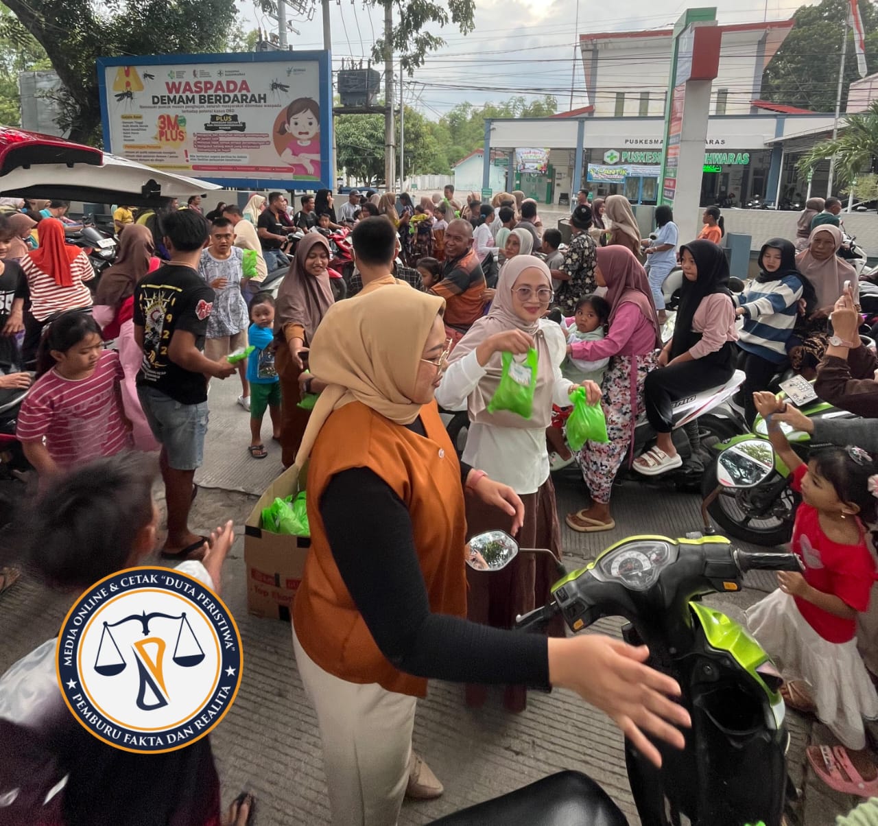 BOJONEGORO, dutaperistiwa.com – Seluruh staf Puskesmas Kecamatan Sugihwaras, Bojonegoro, menggelar aksi berbagi takjil di depan pintu gerbang masuk Puskesmas pada Jum’at (21/03/2025) mulai pukul 16.30 WIB. Kegiatan ini dilakukan sebagai bentuk kepedulian terhadap sesama, terutama bagi warga sekitar dan para pelancong yang sedang dalam perjalanan saat menjelang berbuka puasa.