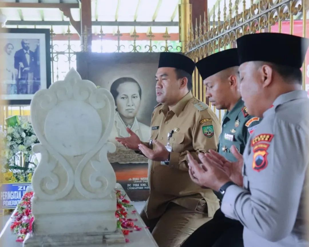 BLORA, dutaperistiwa.com – Bupati Blora, H. Arief Rohman, bersama Komandan Kodim 0721/Blora, Letkol Inf Agung Cahyono dan Kapolres Blora, AKBP Wawan Andi Susanto, melaksanakan ziarah ke makam Raden Ajeng Kartini di Desa Mantingan, Kecamatan Bulu, pada Senin (21/04/2025). Ziarah ini digelar untuk memperingati Hari Kartini sekaligus mengenang jasa pahlawan emansipasi wanita Indonesia tersebut. Rombongan tampak khidmat saat meletakkan karangan bunga dan berdoa di pusara R.A. Kartini, yang menjadi simbol perjuangan kesetaraan dan pendidikan.