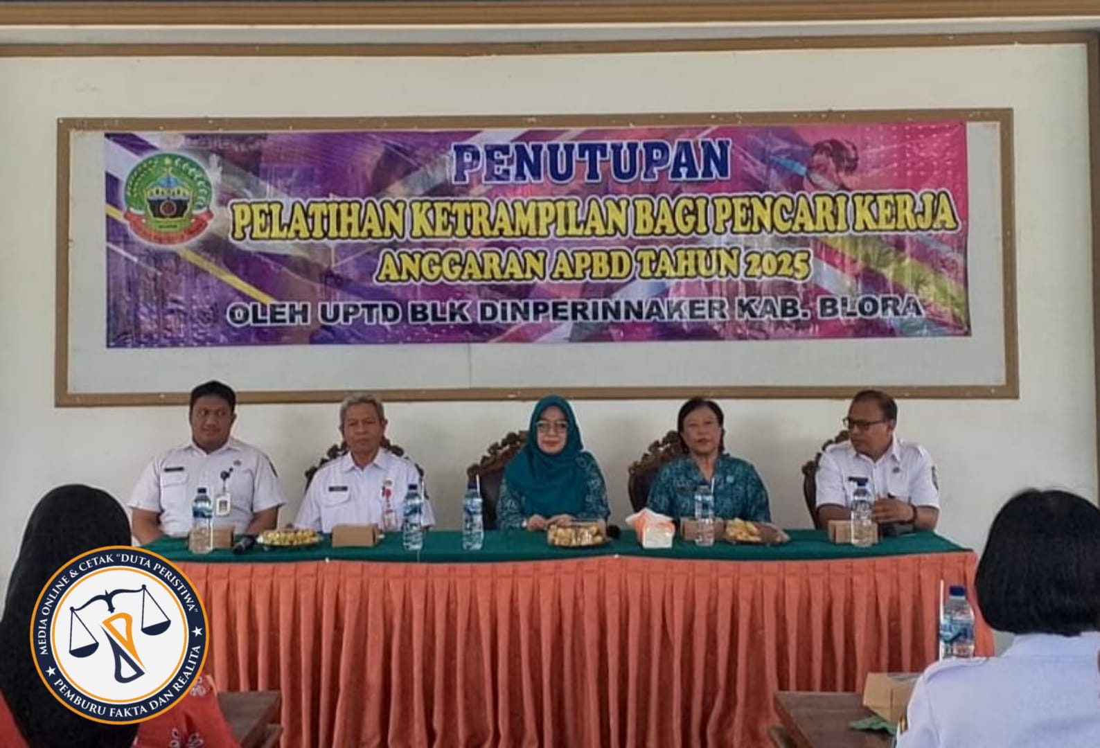 BLORA, dutaperistiwa.com – Unit Pelaksana Teknis Daerah (UPTD) Balai Latihan Kerja dari Dinas Perindustrian dan Tenaga Kerja Kabupaten Blora resmi menutup rangkaian kegiatan pelatihan kerja yang digelar di wilayah Kecamatan Blora, pada Selasa (14/05/25).