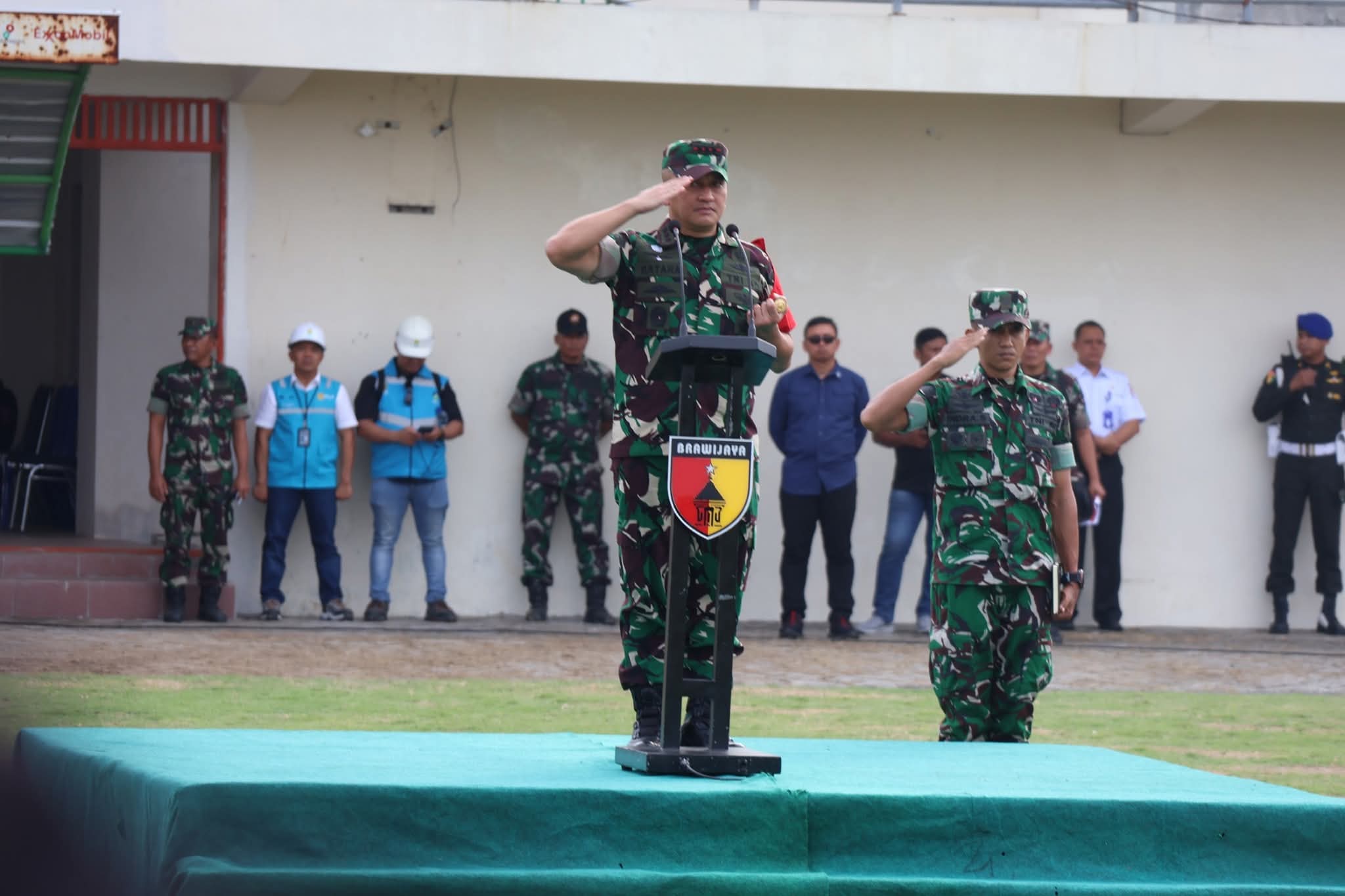 Komandan Korem (Danrem) 082/CPYJ Kolonel Inf Batara Alex Bulo bertindak menjadi pimpinan apel dan didampingi Bupati Bojonegoro Setyo Wahono, Dandim 0813 Bojonegoro, Dandim 0812 Lamongan, Wakapolres dan tamu kehormatan lainnya.
