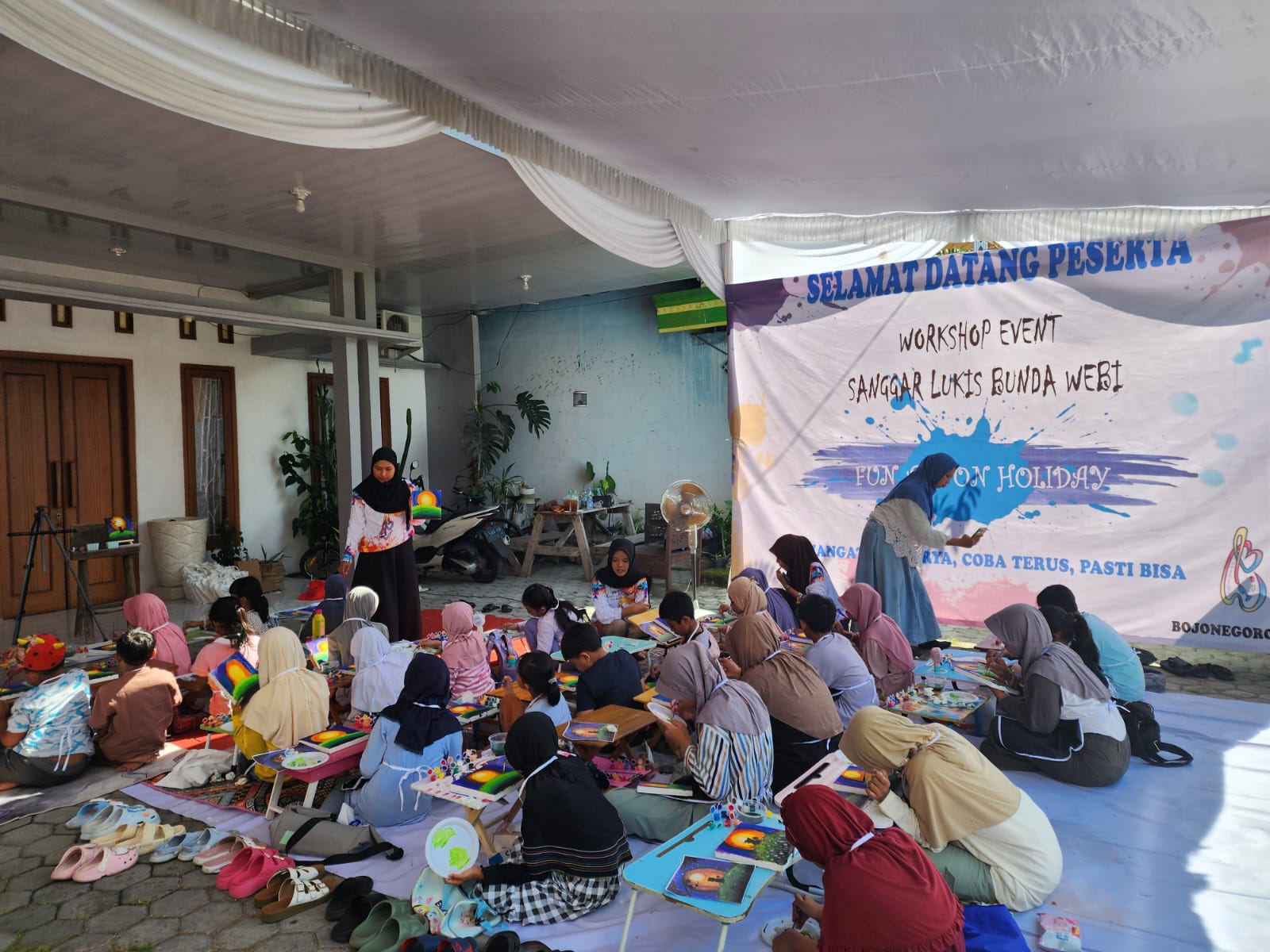 BOJONEGORO, dutaperistiwa.com – Sanggar Lukis “Bunda Webi” menggelar workshop fun art on holiday dengan motto “Semangat Berkarya Coba Terus, Pasti Bisa” di Barat Perumda No.21 Bojonegoro, Jawa Timur.