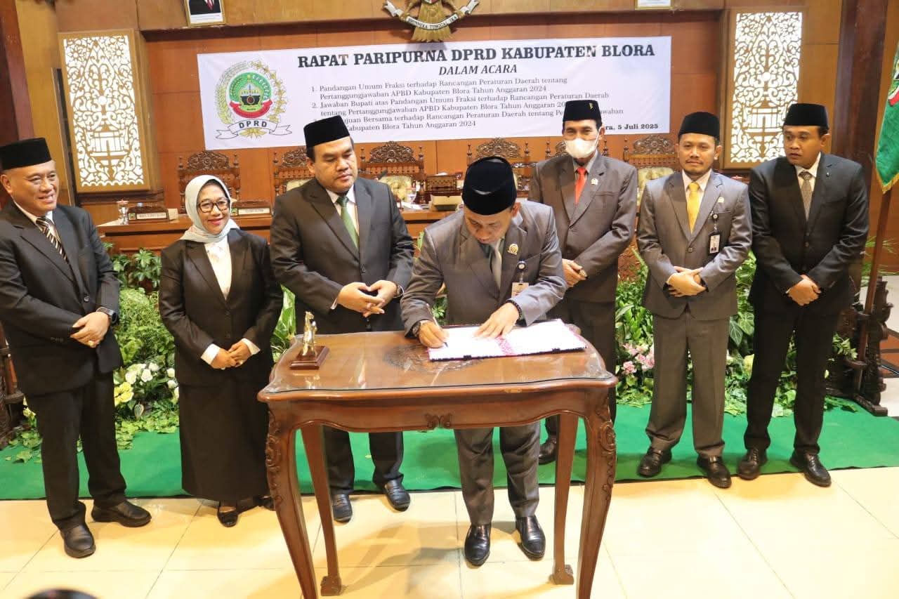 “Dengan telah disetujuinya rancangan peraturan daerah tentang pertanggungjawaban pelaksanaan APBD tahun anggaran 2024 dan rancangan Perda tentang Perubahan APBD Kabupaten Blora Tahun Anggaran 2025 maka kami ucapkan terima kasih dan penghargaan yang setinggi-tingginya atas kerja sama yang baik kepada seluruh pimpinan dan anggota DPRD Kabupaten Blora,” lanjut Bupati.