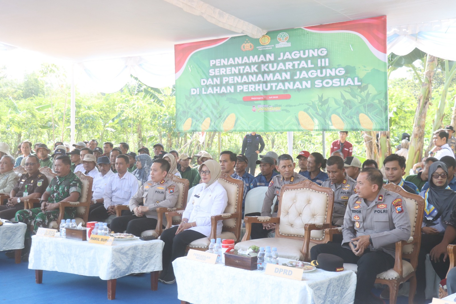 Dalam kegiatan tersebut, Kapolres Bojonegoro AKBP Afrian Satya Permadi, SH, SIK, MIK hadir bersama jajaran Forum Koordinasi Pimpinan Daerah (Forkopimda) Bojonegoro. Tampak hadir Wakil Bupati Bojonegoro Nurul Azizah, Kasdim 0813 Mayor Inf Bambang Riyanto, perwakilan Kejaksaan Negeri, Wakapolres, PJU Polres Bojonegoro, pihak Perhutanan Sosial, Perhutani, serta sejumlah tamu undangan lainnya.