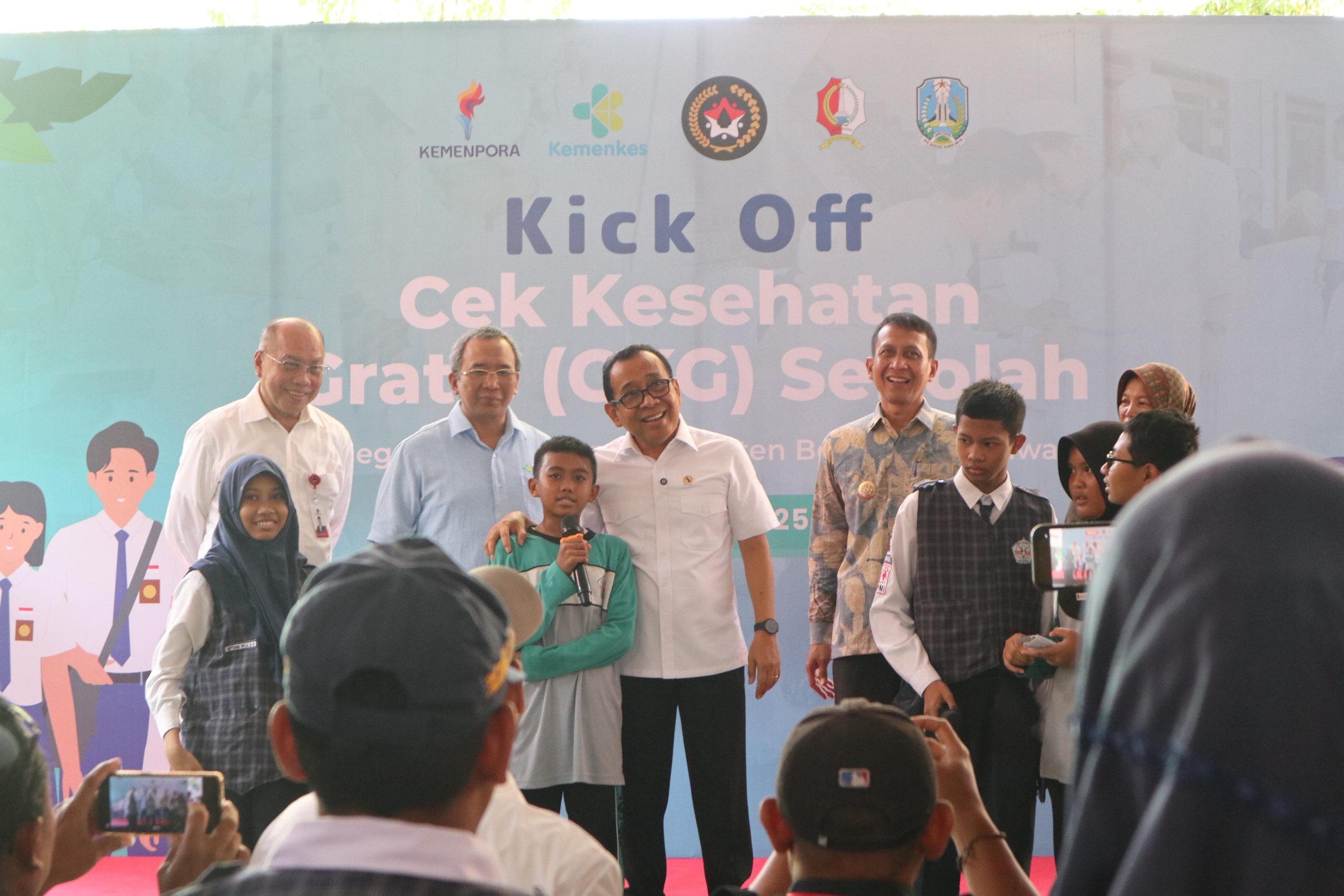 Kegiatan CKG ini makin lengkap dengan kehadiran Menteri Koordinator Bidang Pembangunan Manusia dan Kebudayaan RI, Pratikno. Bersama Bupati Setyo Wahono dan Wakil Bupati Nurul Azizah, Menko PMK menyampaikan pesan penting kepada para siswa.