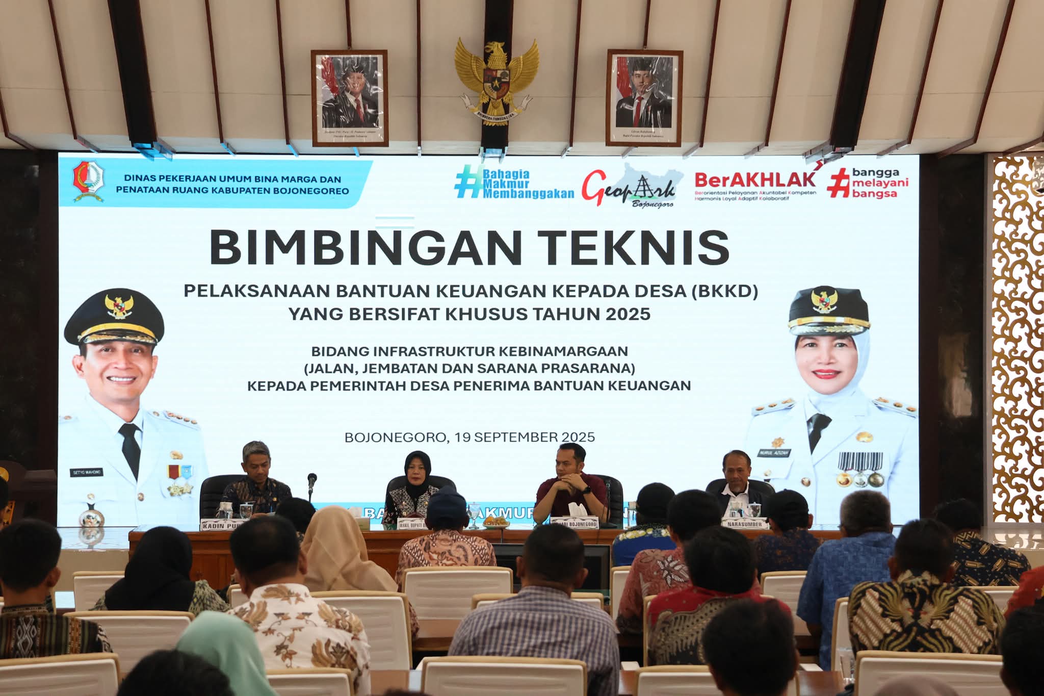 Kepala Dinas Pekerjaan Umum Bina Marga dan Penataan Ruang (PU BIMA PR) Kabupaten Bojonegoro Chusaifi Ivan menjelaskan, guna menyukseskan pembangunan di desa, Bimtek diselenggarakan selama dua hari, Jumat (19/09/2025) dan Senin (22/09/2025). Dalam sehari ada dua sesi yang diikuti 320 desa yang mendapatkan BKKD.