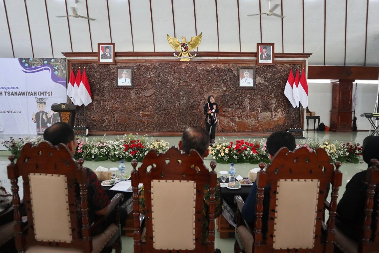 BOJONEGORO, dutaperistiwa.com – Siang itu, sorak dan tepuk tangan menggema di Pendopo Malowopati Bojonegoro. Dari deretan finalis Lomba Bertutur tingkat SMP/MTs se-Kabupaten Bojonegoro, Nyafica Jesica Putri akhirnya memenangkan perlombaan dan menyabet juara pertama. Siswi SMPN 1 Ngasem itu tampak sempat menatap tak percaya saat namanya disebut, sebelum akhirnya tersenyum lebar campuran antara kaget dan haru.