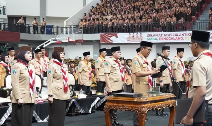 BOJONEGORO, dutaperistiwa.com – Gerakan Pramuka Kwartir Cabang (Kwarcab) Bojonegoro melaksanakan pelantikan Majelis Pembimbing Cabang (Mabincab), Kwartir Cabang, serta Pramuka Garuda masa bakti 2025–2030, Kamis (20/11), di GOR Utama Bojonegoro. Acara berlangsung dengan penuh khidmat dan dihadiri ribuan peserta dari berbagai golongan Pramuka.