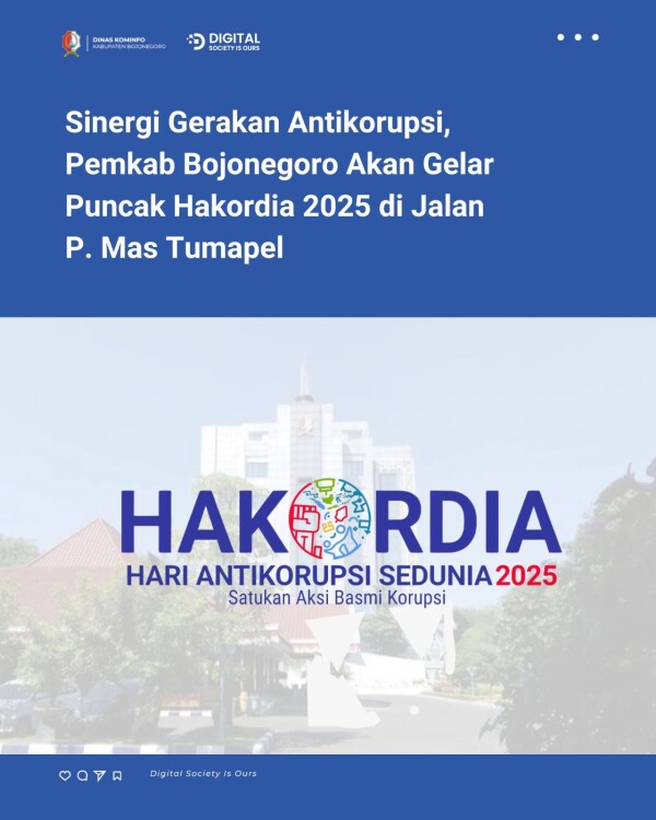 Mengusung tema “Satukan Aksi Basmi Korupsi”, puncak Hakordia direncanakan dihadiri langsung oleh Bupati Bojonegoro Setyo Wahono, jajaran Forkopimda, serta berbagai elemen masyarakat.