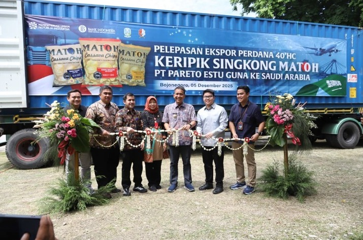 BOJONEGORO, dutaperistiwa.com – PT. Pareto Estu Guna, perusahaan industri consumer goods berbasis healthy food yang berlokasi di Jalan Raya Kabunan Balen, Bojonegoro, resmi melepas ekspor perdana produk keripik singkong premium “Matoh” ke Arab Saudi. Pengiriman satu kontainer penuh ini menjadi tonggak penting bagi UMKM lokal untuk masuk ke pasar internasional, dengan nilai ekspor mencapai USD 17.500.