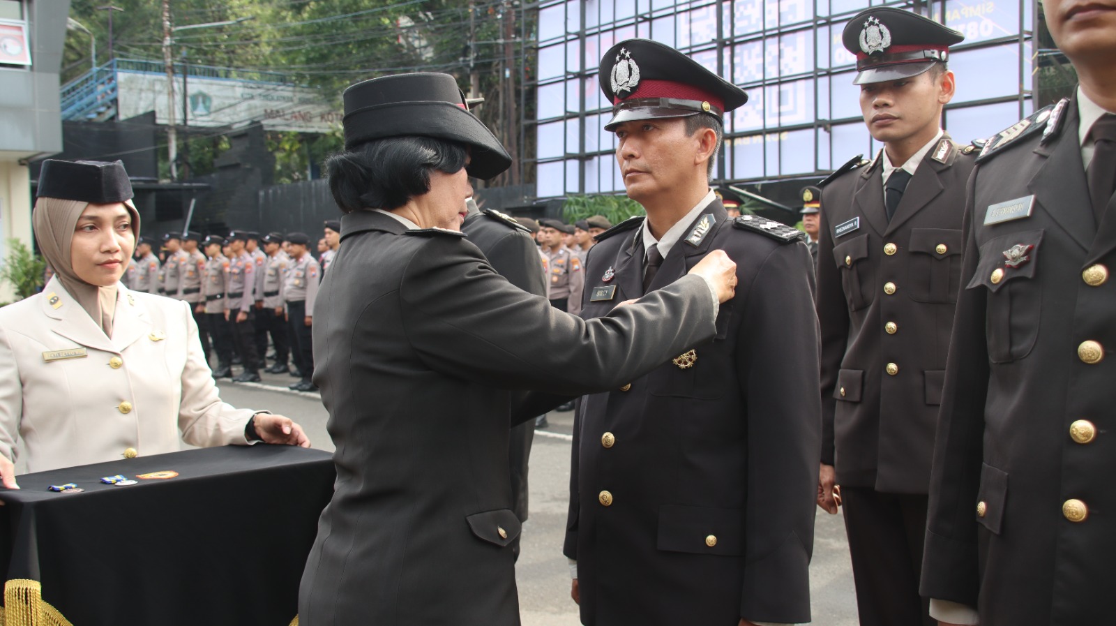 Penganugerahan Tanda Kehormatan Satyalancana Pengabdian di Polresta Malang Kota bentuk refleksi sekaligus penguat komitmen menjaga nilai pengabdian dan kemanusiaan.