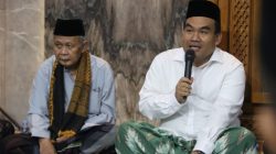 Kyai Minardi, selaku tokoh agama atau ulama yang dituakan, mempersilahkan Bupati Dr. H. Arief Rohman, S.IP., M.Si., untuk duduk lesehan bergabung dengan jamaah masjid Al Anshor.