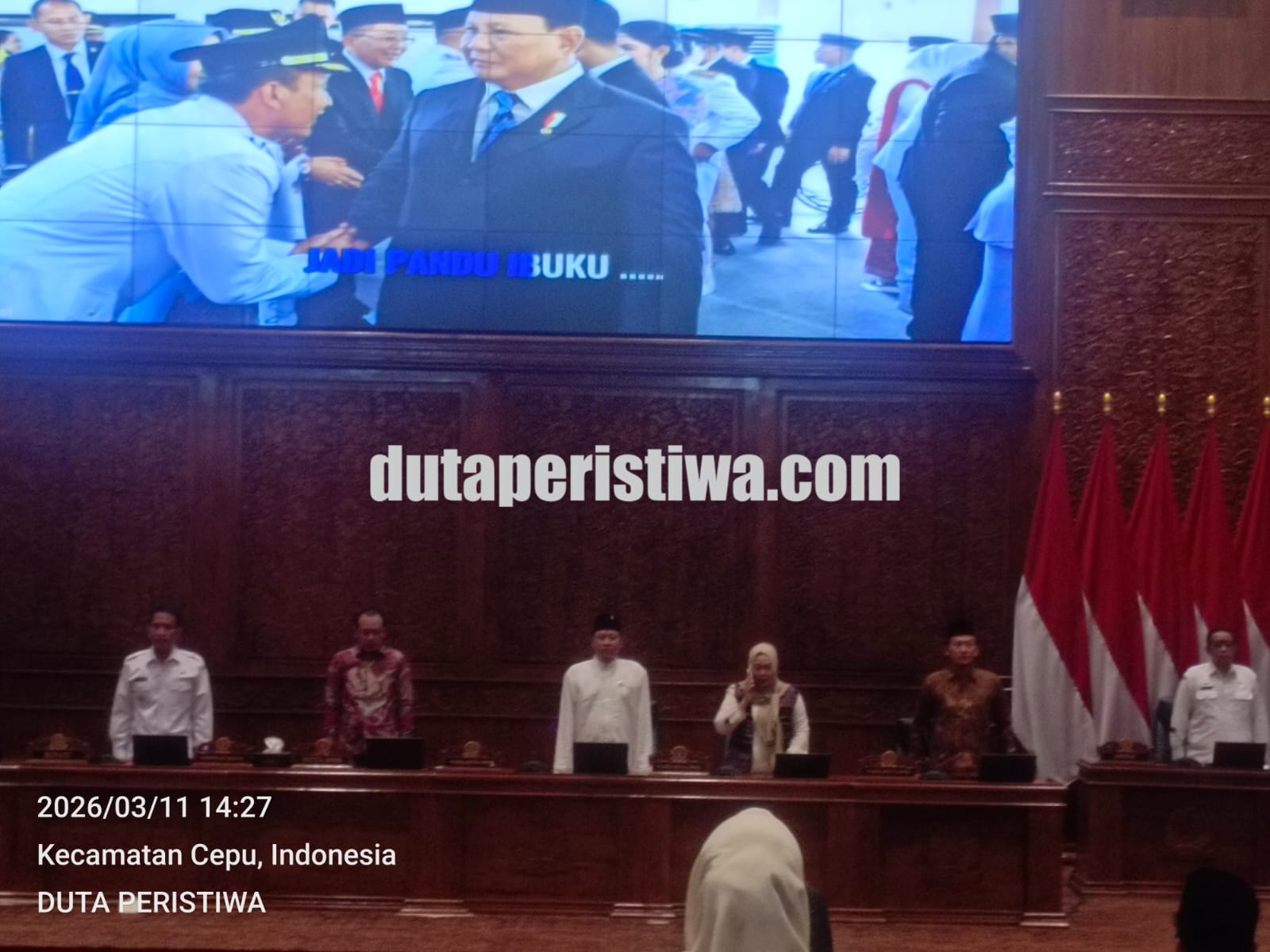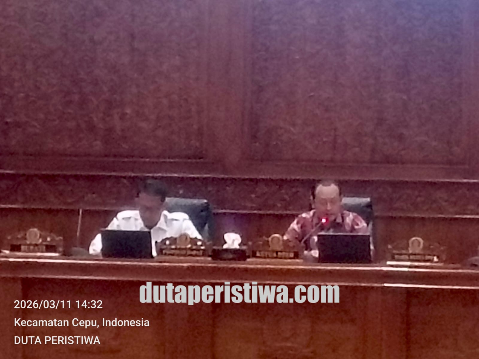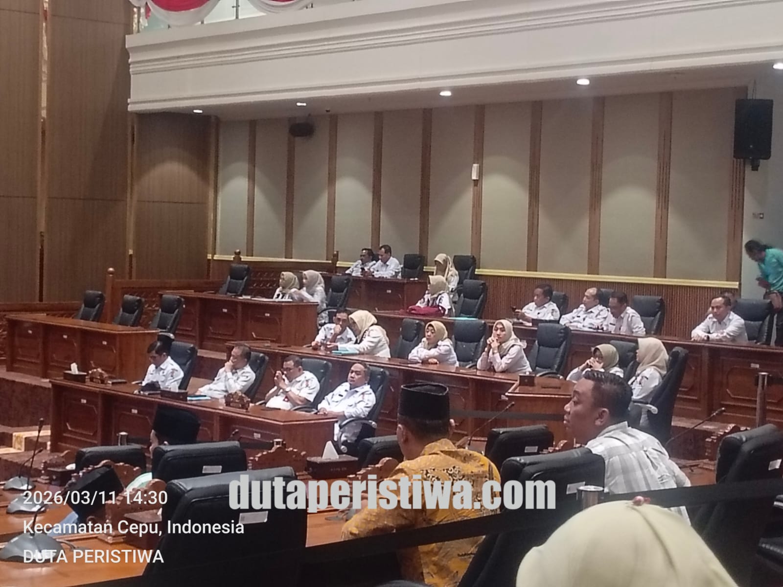BOJONEGORO, dutaperistiwa.com – Dewan Perwakilan Rakyat Daerah (DPRD) Kabupaten Bojonegoro menggelar Rapat Paripurna pada Rabu (11/3/2026) pukul 13.00 WIB di Ruang Rapat Paripurna DPRD Bojonegoro. Rapat tersebut dipimpin langsung oleh Ketua DPRD Abdulloh Umar dan dihadiri Bupati Bojonegoro Setyo Wahono bersama jajaran pimpinan daerah.