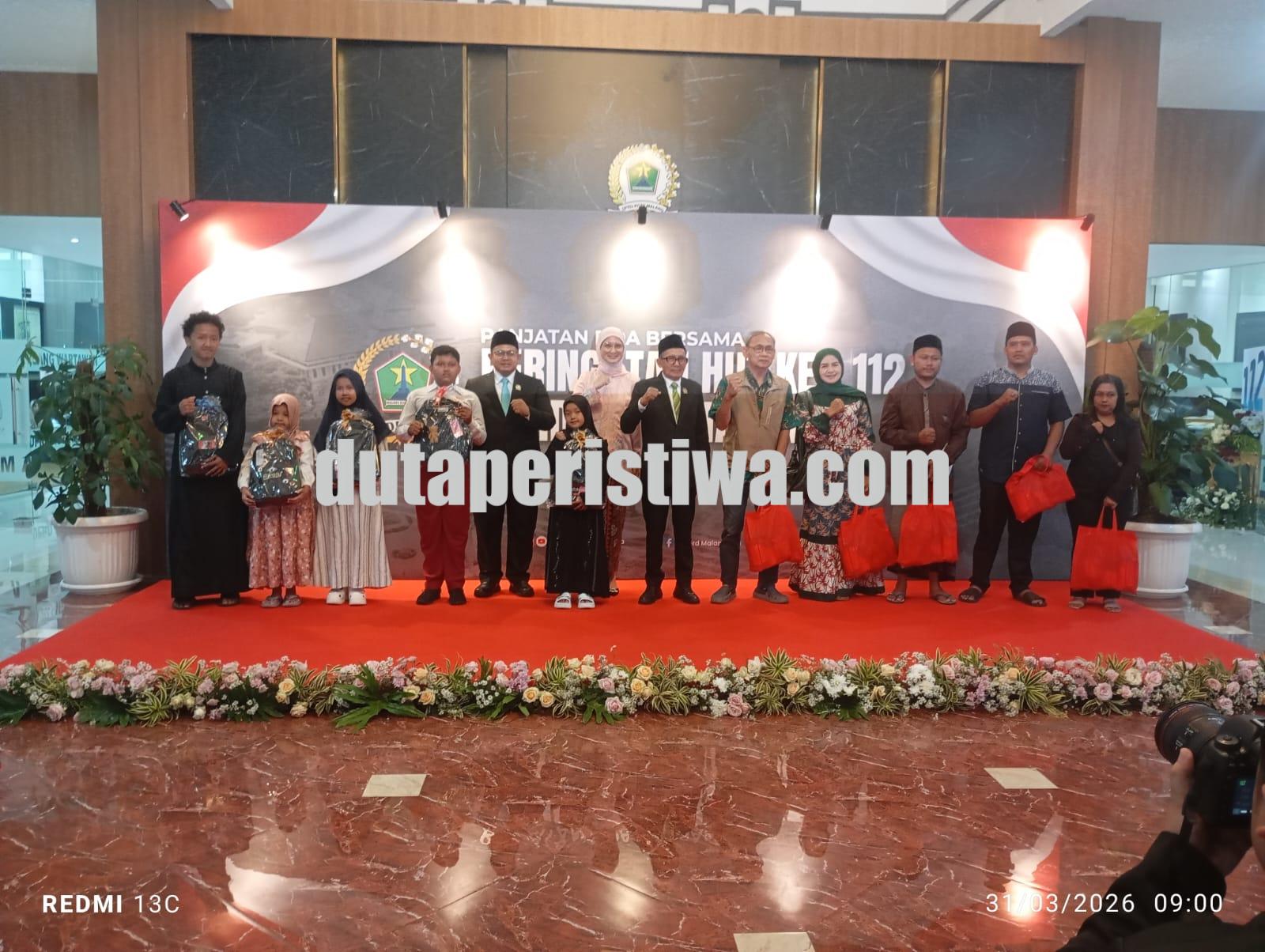 MALANG, dutaperistiwa.com – Momentum Hari Ulang Tahun (HUT) ke-112 DPRD Kota Malang dimaknai dengan penuh rasa syukur dan kepedulian sosial. Meski peringatan hari jadinya jatuh pada 25 Maret 2026, kegiatan baru dapat dilaksanakan pada Senin (31/3/2026) dengan menggelar santunan kepada 112 anak yatim dan piatu di Kota Malang.